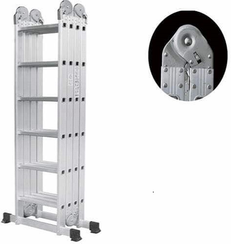 4by6 aluminium folding ladder 24ft this ladder is simply one that can be used for many purposes. It contains more than one feature that allows it to have different uses. Many people use this ladder as it is able to change into so many positions; allowing users to use for different tasks around the house or worksite. Multi-purpose ladders are able to be opened into a step ladder position in order to be climbable and fully self-supportable. They can also be extended, allowing them to reach higher locations; but just like with your normal extended ladder you must have some support to lean the ladder against. This ladder can also be great for storage & convenient transport as it is easily foldable, therefore will not take up that much of your space!